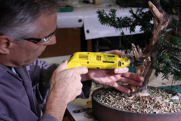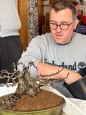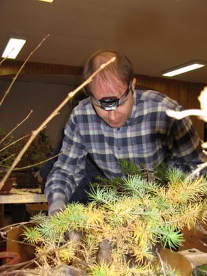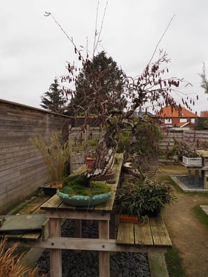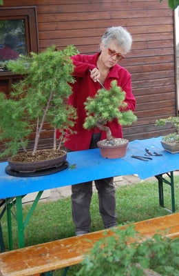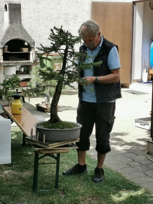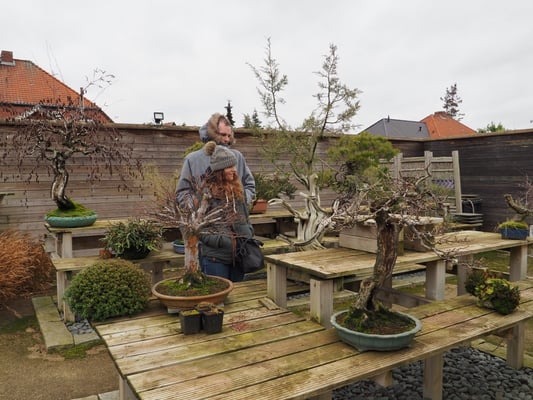 seine Bonsai-Sammlung zu besichtigen, welche vorwiegend aus selbst gesammelten topfiten Bäumen
