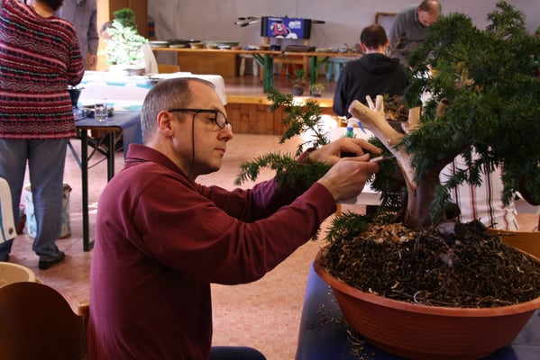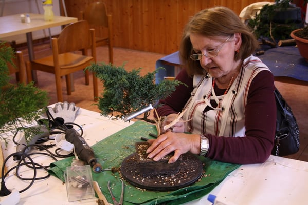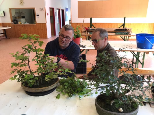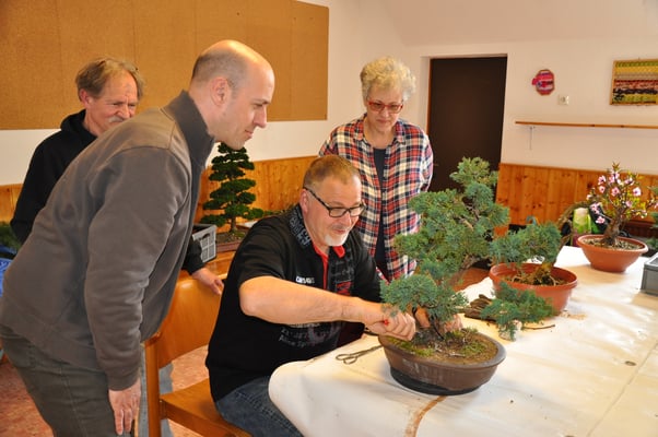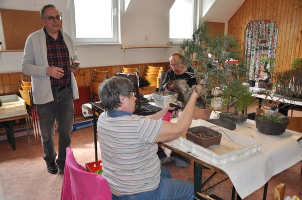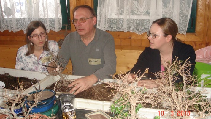 Regen Zuspruch fand unser Einsteigerkurs am 10. März 2018. Nach einer kurzen theoretischen Einführung ging es für die Bonsai-interessierten Damen und Herren gleich ans Werk. Unter der fachmännischen Anleitung von Herbert setzten sie ca. zehnjährige Zürgelbäume in Schalen und brachten diese dann auch noch in Form. Die nachstehenden Bilder geben ein paar Eindrücke dieses gelungenen Nachmittags.