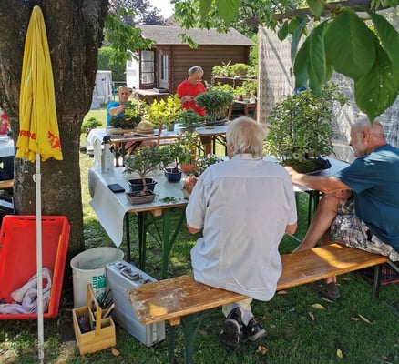 Eine kleine Gruppe des Wiener Bonsaiclub war bei der Ausstellung in Augsburg (17. bis 19. Juni 2022). Sie waren von der Menge und der sehr guten Qualität der Bonsai beeindruckt.
