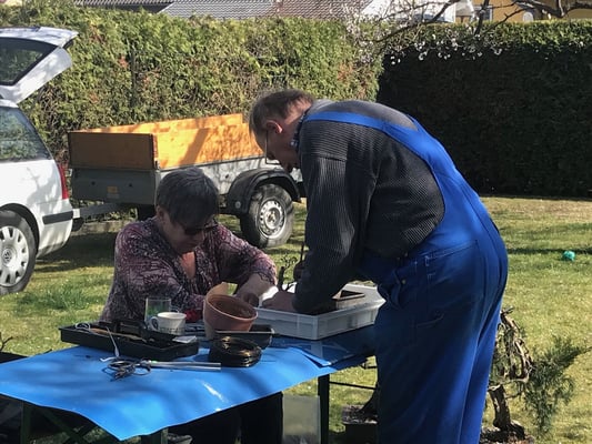 Blumengärten haben diese Gelegenheit genutzt. Sehr viele Bäume und auch viele Schalen und anderes Zubehör haben die Besitzer/innen gewechselt und viele Informationen zum Thema Bonsai wurden