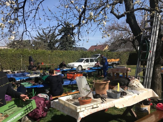 Am 30. März 2019 traf sich eine kleine Delegation unseres Vereins, um im Garten von Herbert gemeinsam Bäume umzutopfen. Bei strahlendem Sonnenschein und in der Gruppe eine schöne Beschäftigung, wie die nachstehenden Fotos zeigen!